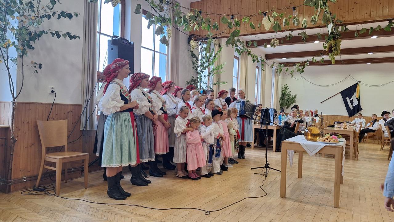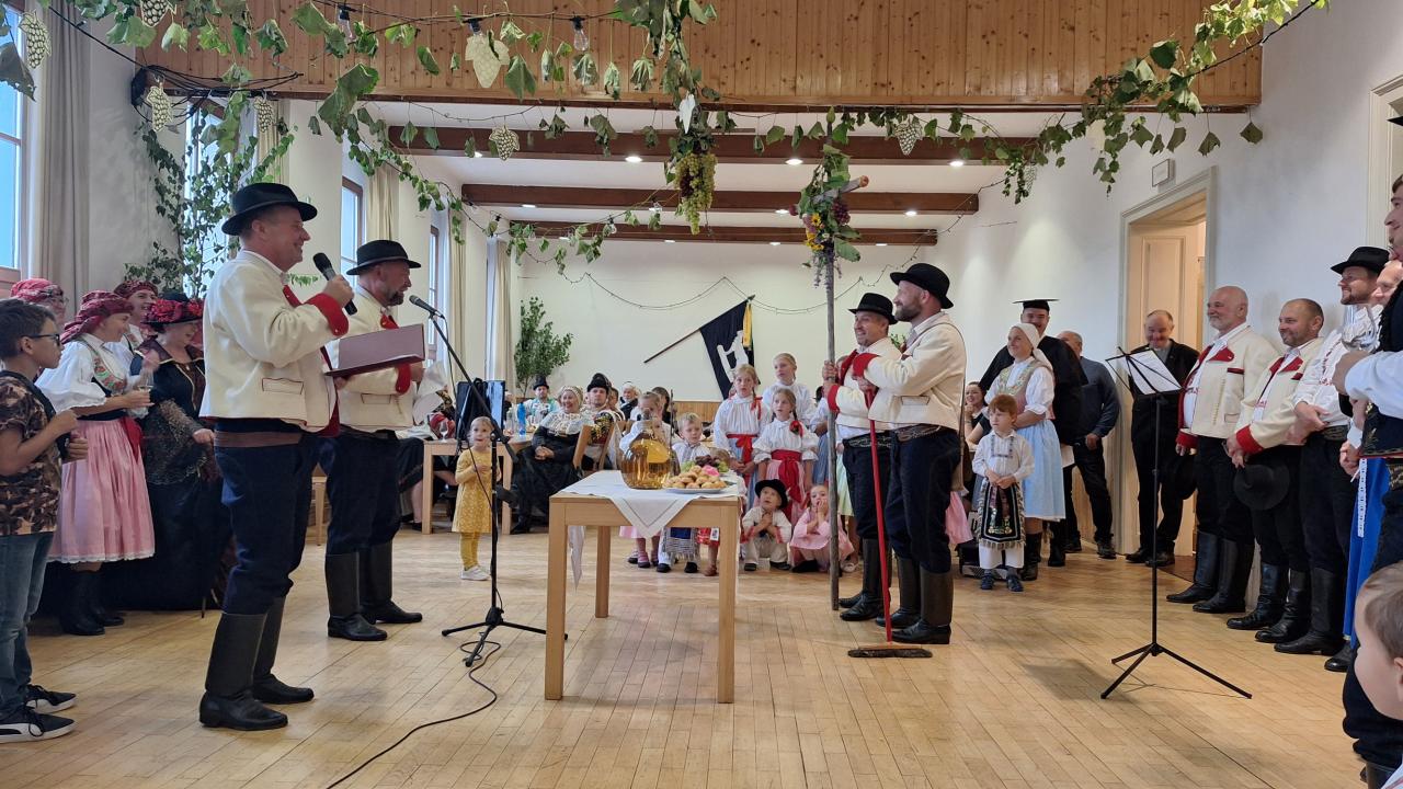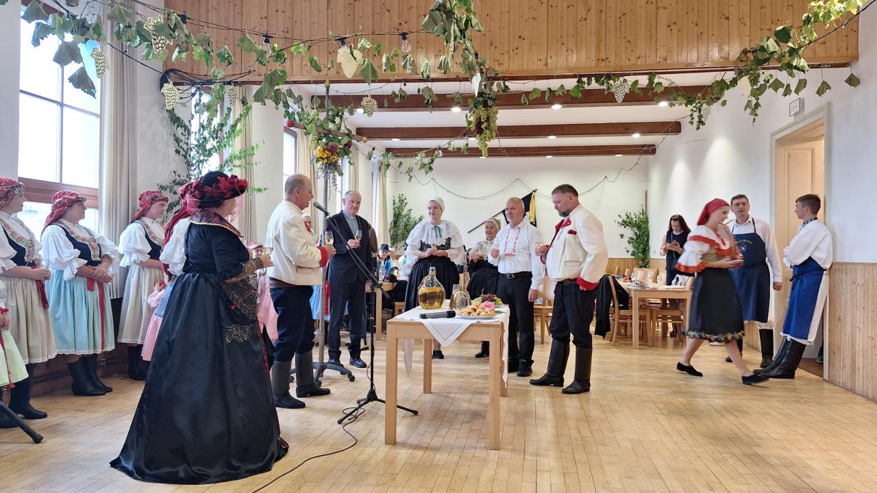 Ochutnávka vín letos proběhla v prostorách sklepa ve vinařském dvoře Obecního domu, kde svoje vzorky vystavili místní vinaři. K poslechu i tanci hrála cimbálová muzika Hora.