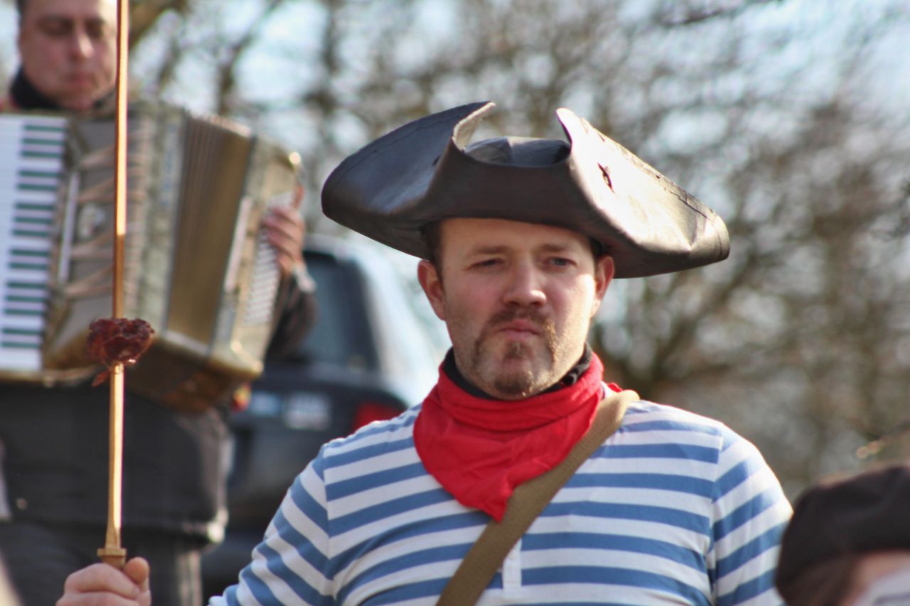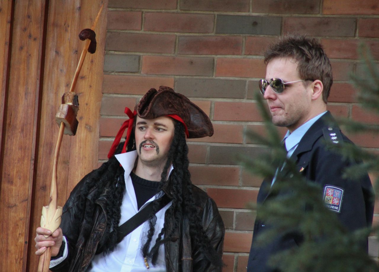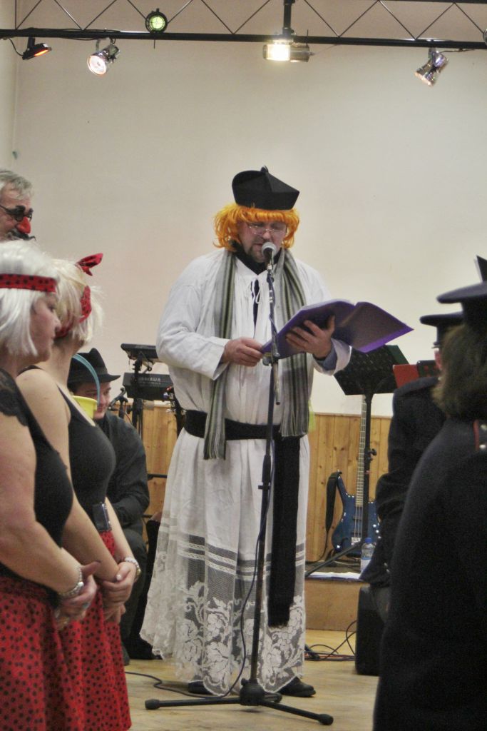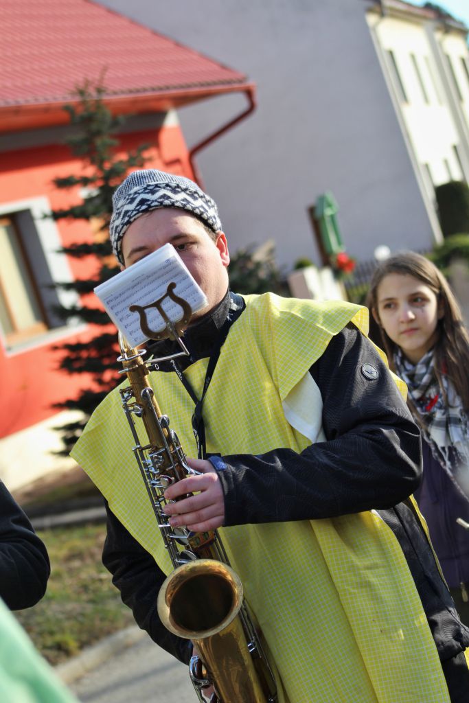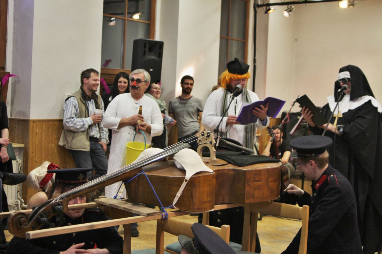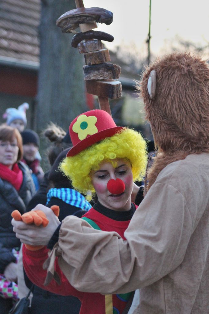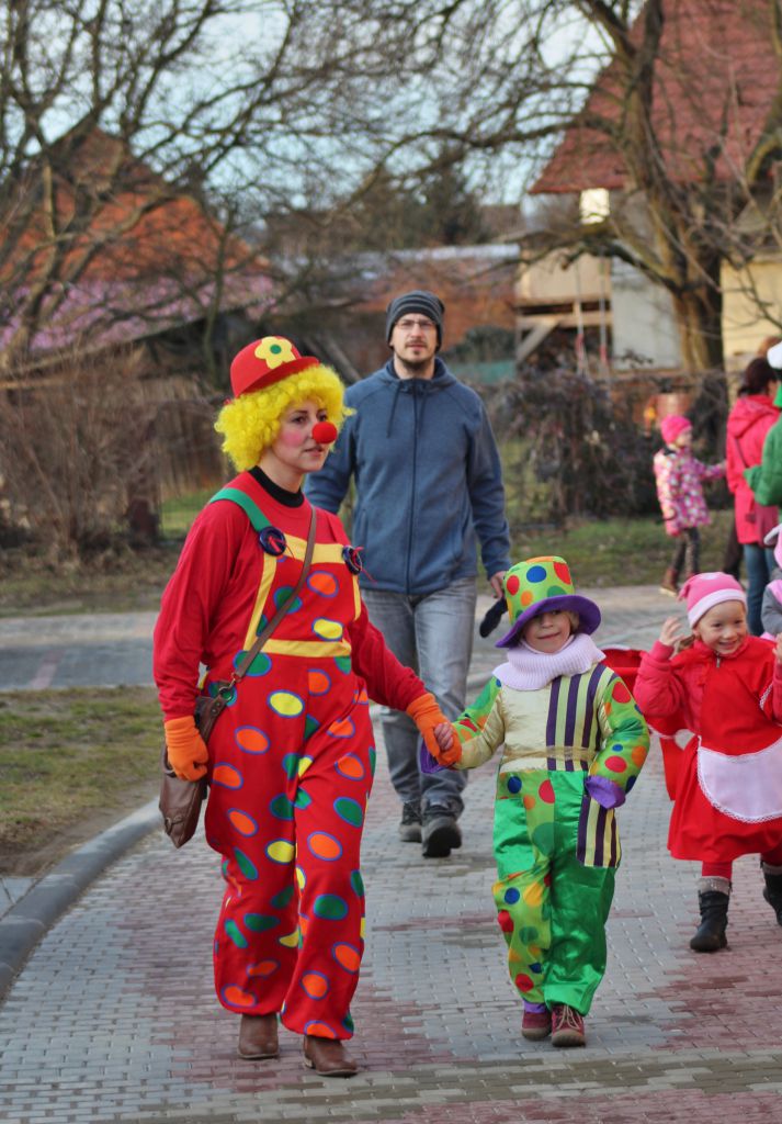 Tradiční pochůzka chasy v maskách po obci a končinová zábava s pochováváním basy