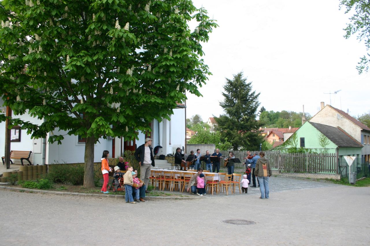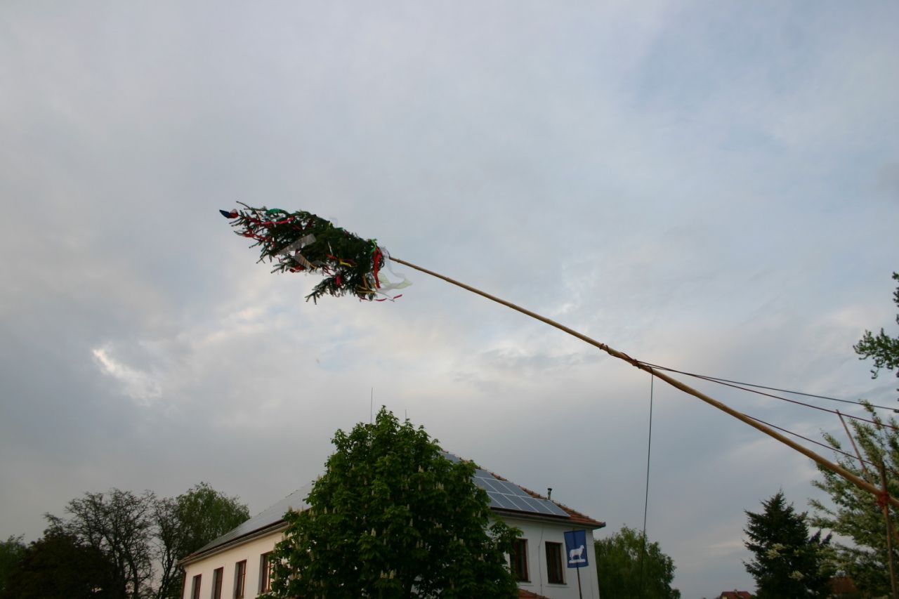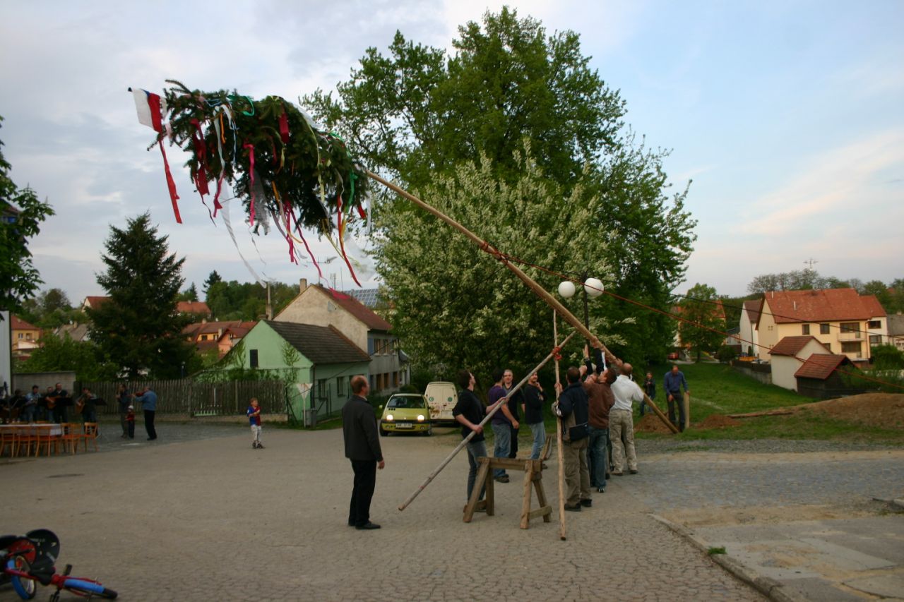 Tradiční stavění Máje před Obecním úřadem