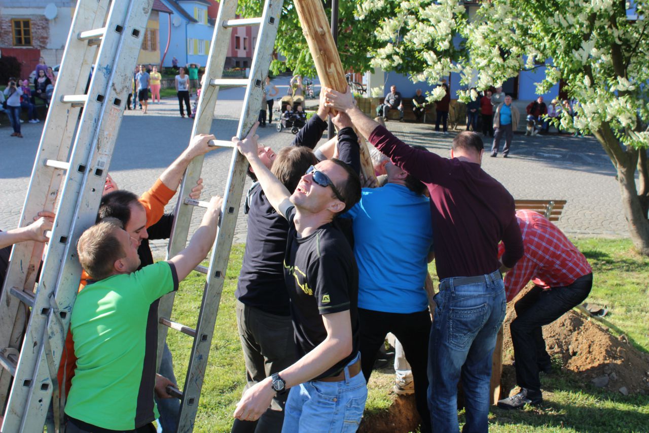 Tradiční stavění Máje před Obecním úřadem