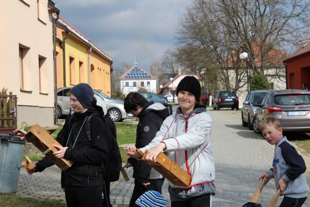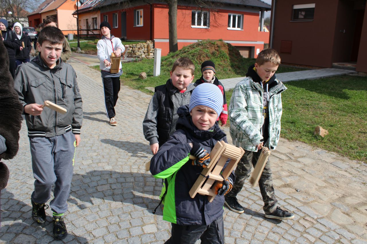 Na Zelený čtvrtek zvony odletí do Říma a nastává období hrkání a klepání po dědině. Kluci mladší patnácti let chodí po Modré. Pochůzky končí až na Bílou sobotu, kdy obchází obec se za krk přivázaným Jidášem (obličej má ukryt pod černou punčochou) a dostávají za poctivé hrkání odměnu.