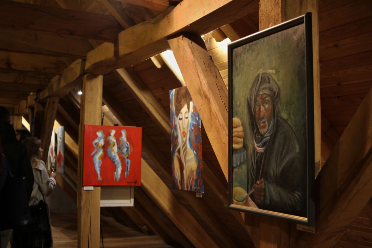 V půdní galerii Velmožského paláce v Archeoskanzenu na Modré vystavují své obrazy bratranci Daniel Štach a Hana Ragasová.